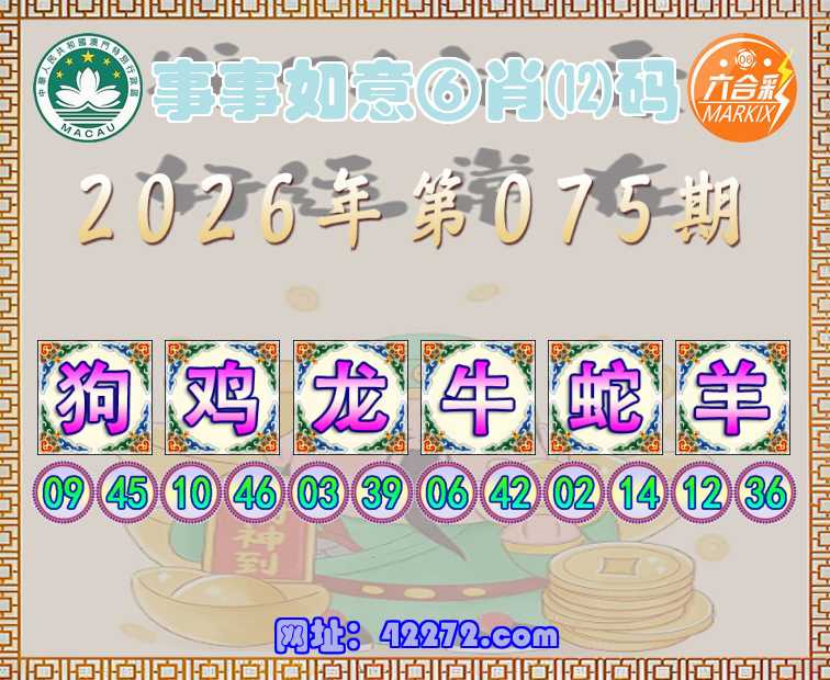 075期:《事事如意》 ⑥肖⑿码【狗鸡龙牛蛇羊】开:00准